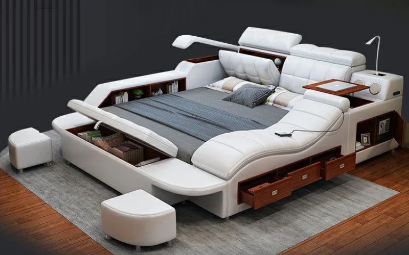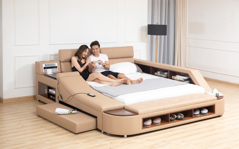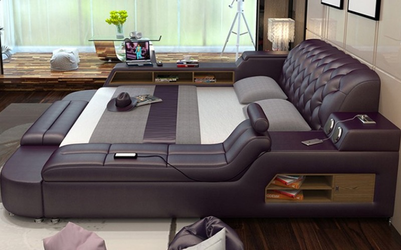 Một số mẫu giường đa năng vừa có thể làm giường ngủ vừa tích hợp ghế sofa massage. Đây là lựa chọn tiết kiệm diện tích cho các căn hộ chung cư nhỏ, vừa phục vụ giấc ngủ vừa tiện lợi khi tiếp khách.
